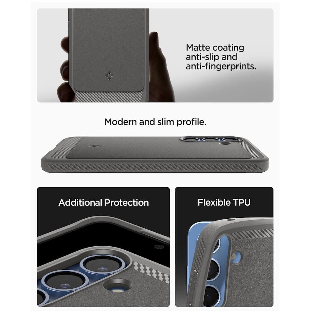 Spigen Rugged Armor MagSafe Case - удароустойчив силиконов (TPU) калъф с MagSafe за Samsung Galaxy S25 (сив)