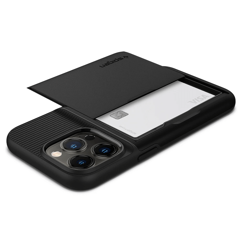 Spigen Slim Armor CS Case - хибриден кейс с отделение за кр. карти и най-висока степен на защита за iPhone 13 Pro (черен)