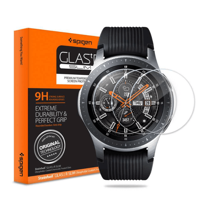 Spigen Tempered Glass GLAS.tR Slim - комплект от 3 броя най-висок клас стъклено защитно покритие за дисплея на Samsung Galaxy Watch (46mm) (прозрачен)