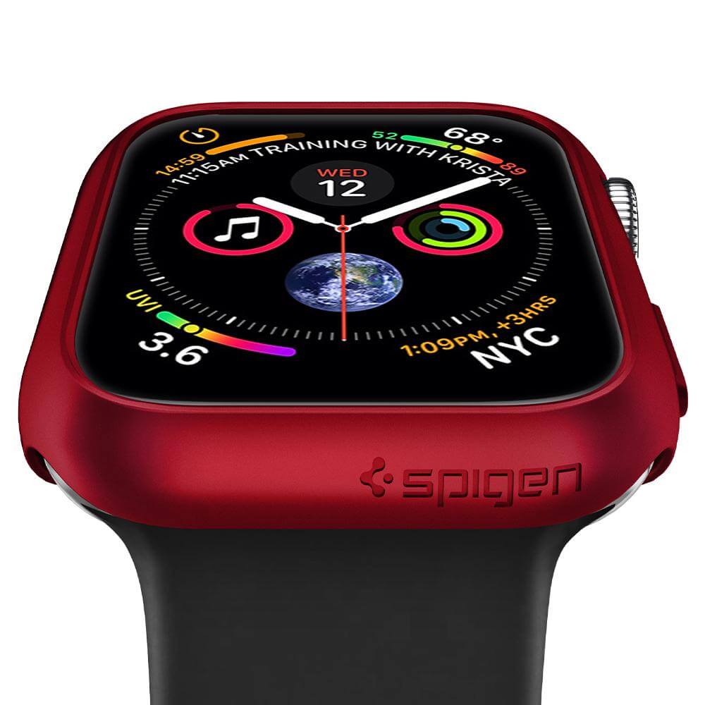 Spigen Thin Fit Case - качествен твърд кейс за Apple Watch 44 mm (червен)
