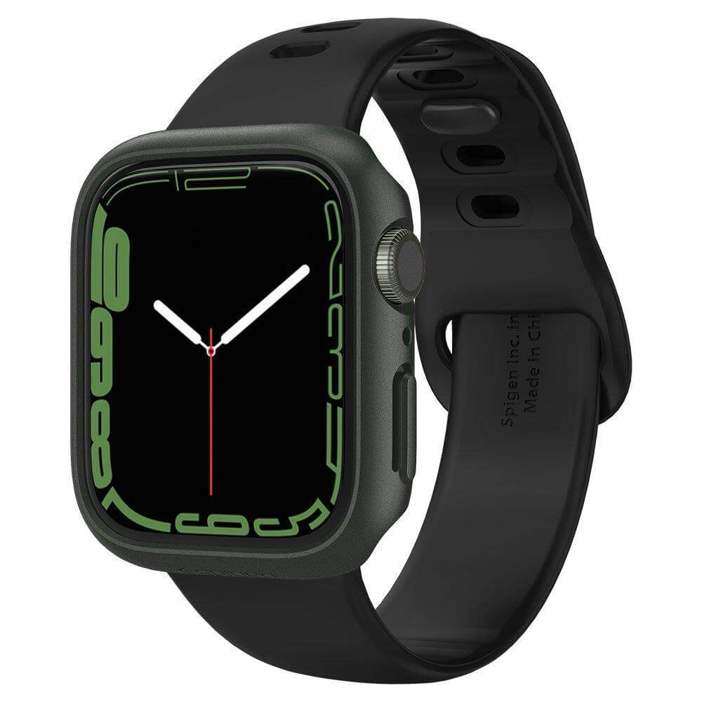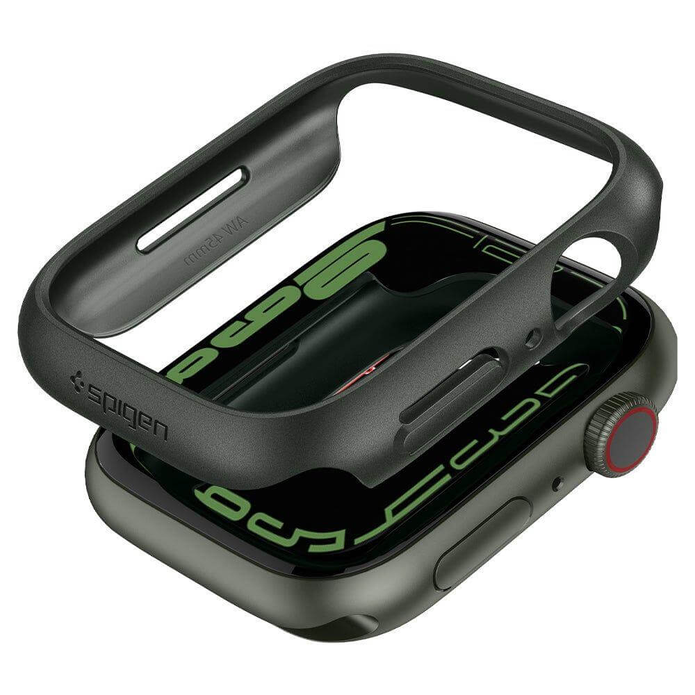 Spigen Thin Fit Case - качествен твърд кейс за Apple Watch 9 45мм, Apple Watch 8 45мм, Apple Watch 7 45мм (тъмнозелен)