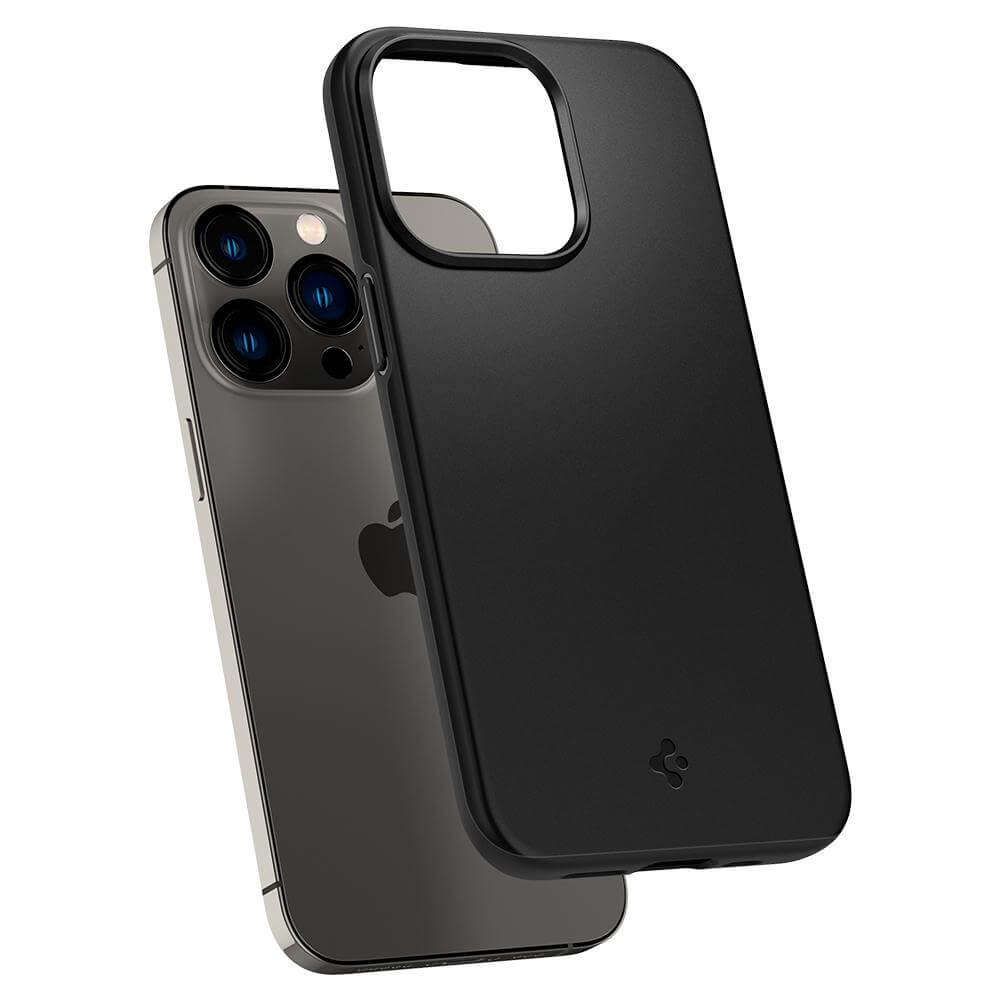 Spigen Thin Fit Case - качествен тънък матиран кейс за iPhone 13 Pro Max (черен)