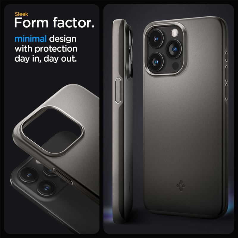 Spigen Thin Fit Case - качествен тънък матиран кейс за iPhone 15 Pro (тъмносив)