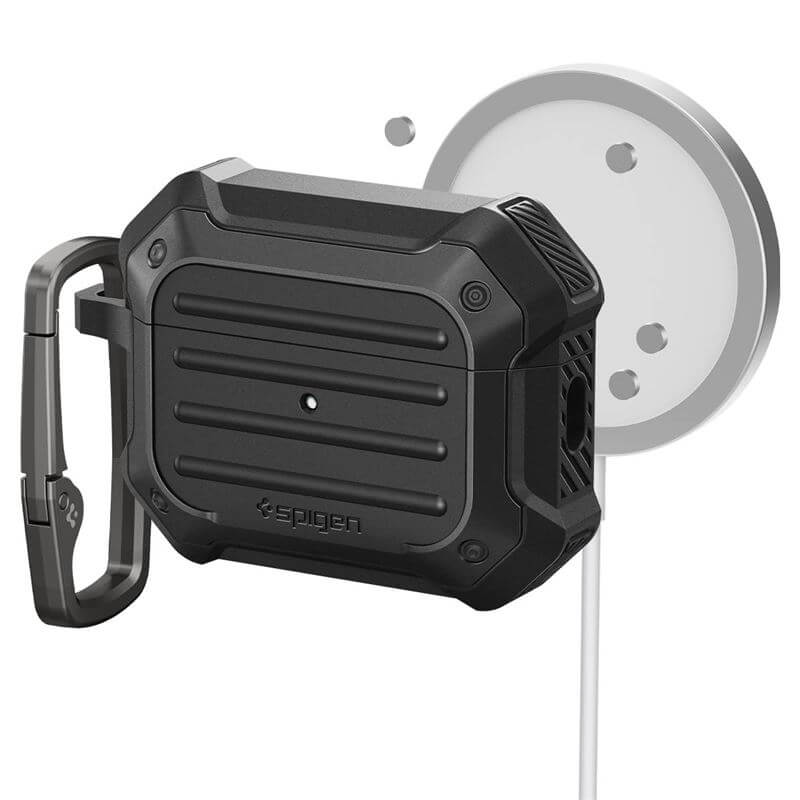 Spigen Tough Armor MagSafe - хибриден удароустойчив кейс с MagSafe и карабинер за Apple AirPods Pro 2 (черен)