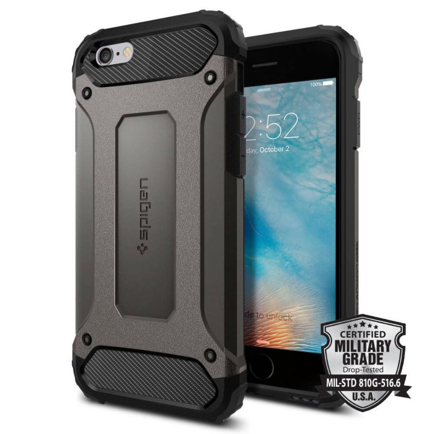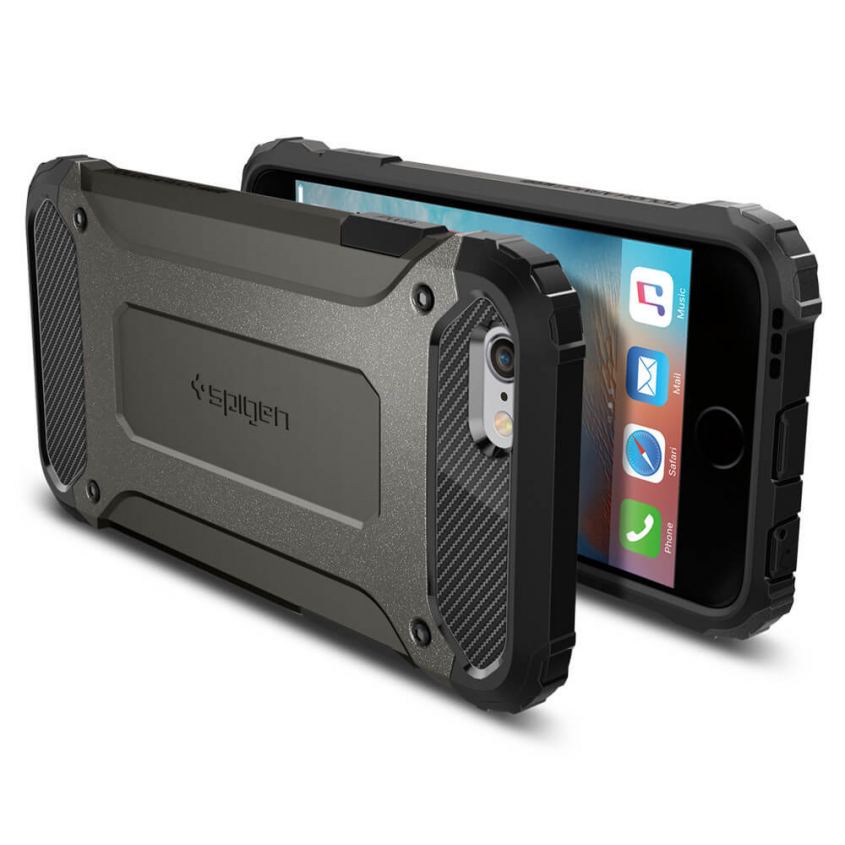 Spigen Tough Armor Tech - кейс с елементи от карбон и най-висока степен на защита за iPhone 6, iPhone 6S (сив-черен)
