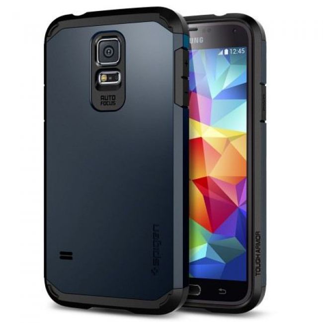 Spigen Tough Armor - удароустойчив хибриден кейс за Samsung Galaxy S5 (тъмносин)