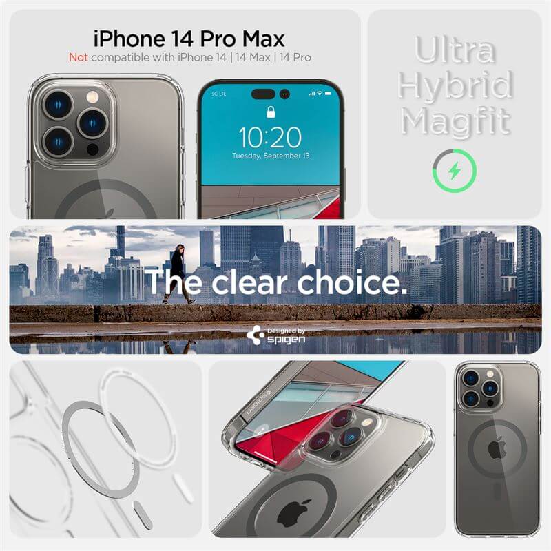 Spigen Ultra Hybrid MagSafe Case - хибриден кейс с висока степен на защита с MagSafe за iPhone 14 Pro Max (прозрачен-черен)