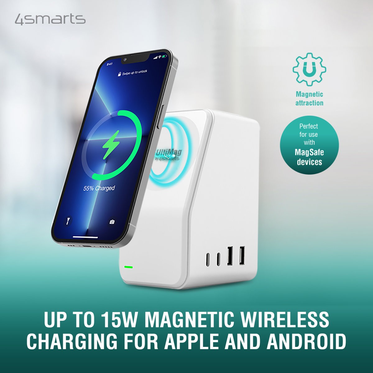 - MagSafe (UltiMag): 15W Max - осигурява бързо безжично зареждане на вашия iPhone с MagSafe.