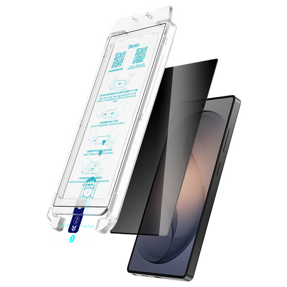 Стъклено защитно покритие с определен ъгъл на виждане за дисплея на Samsung Galaxy S26 - Benks Ultra Shield Privacy Tempered Glass (черен-прозрачен)