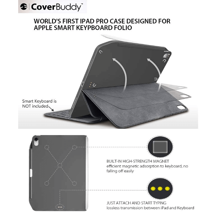 - CoverBuddy е защитен кейс, напълно съвместим с Apple Smart Keyboard, осигуряващ 360-градусова цялостна защита при използване на Apple Smart Keyboard