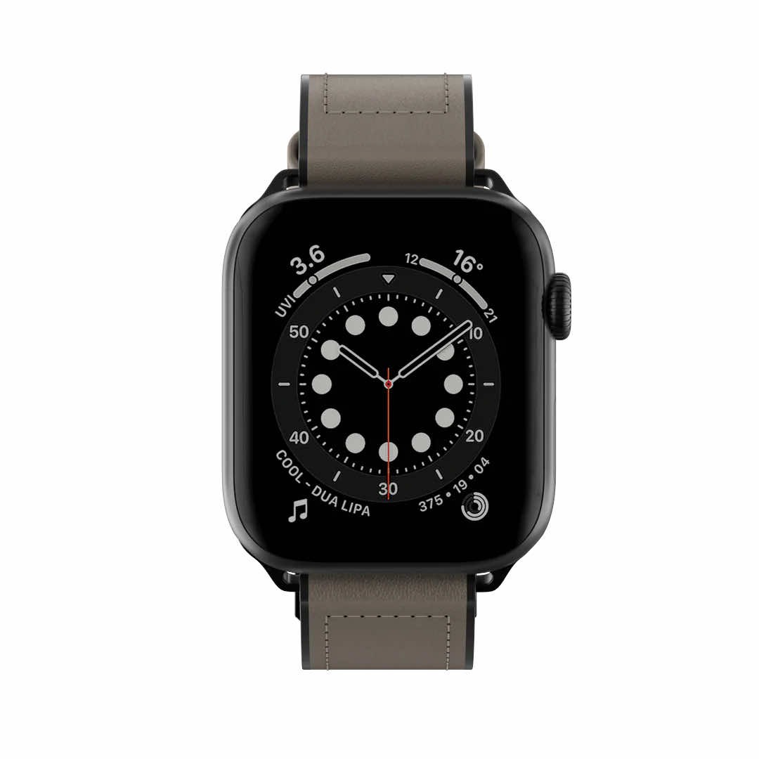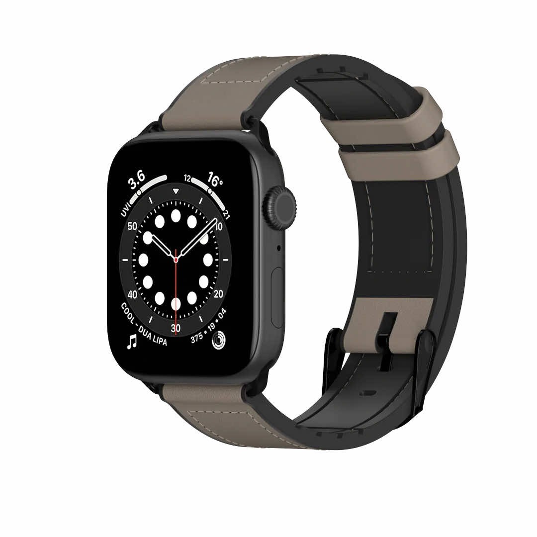 SwitchEasy Hybrid Silicone-Leather Watch Band - хибридна (естествена кожа и силикон) каишка за Apple Watch 42мм, 44мм, 45мм (сив)