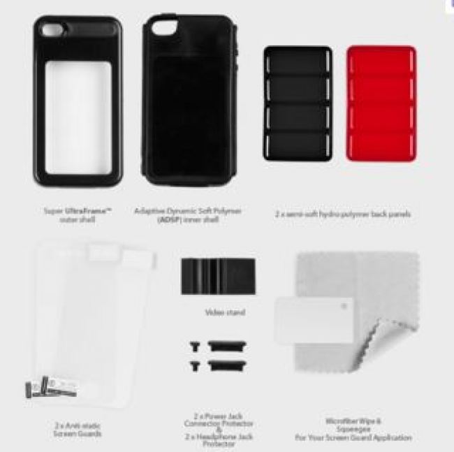 • Кейсът се състой се от три части: UltraFrame™ - външна рамка, ADSP - омекотена полимерна обвивка и хидрополимерен заден панел (два броя)