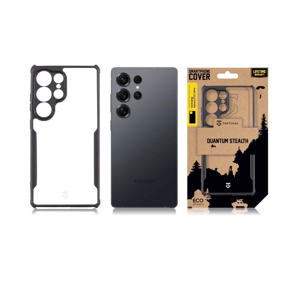 Tactical Quantum Stealth Hybrid Case - хибриден удароустойчив кейс за Samsung Galaxy S25 Ultra (черен-прозрачен)