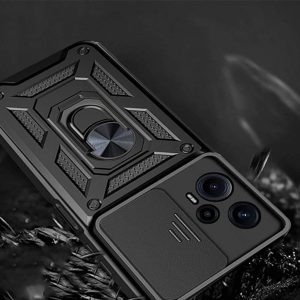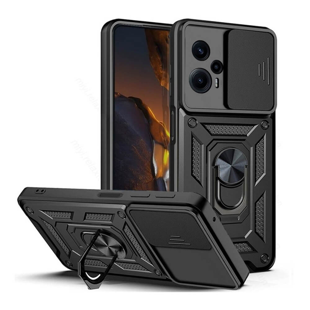 Tech-Protect CamShield Pro Hard Case - хибриден удароустойчив кейс с пръстен против изпускане за Xiaomi Poco F5 (черен)