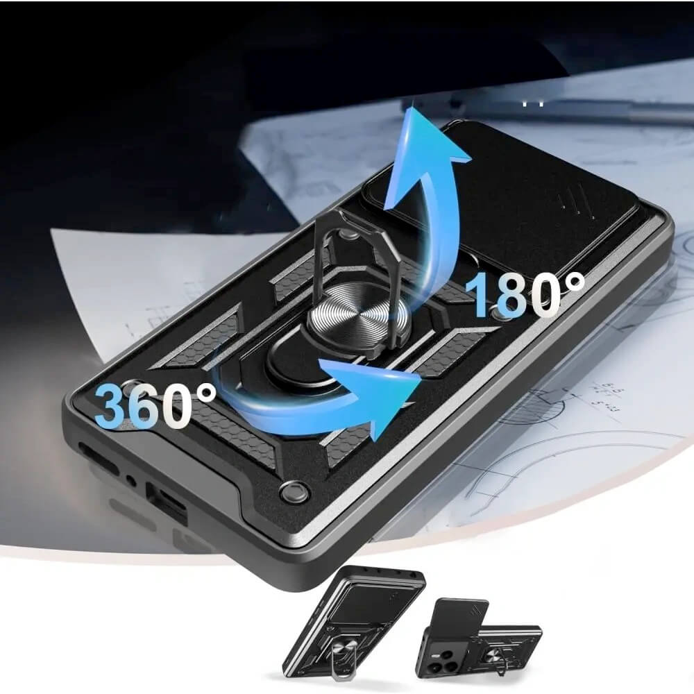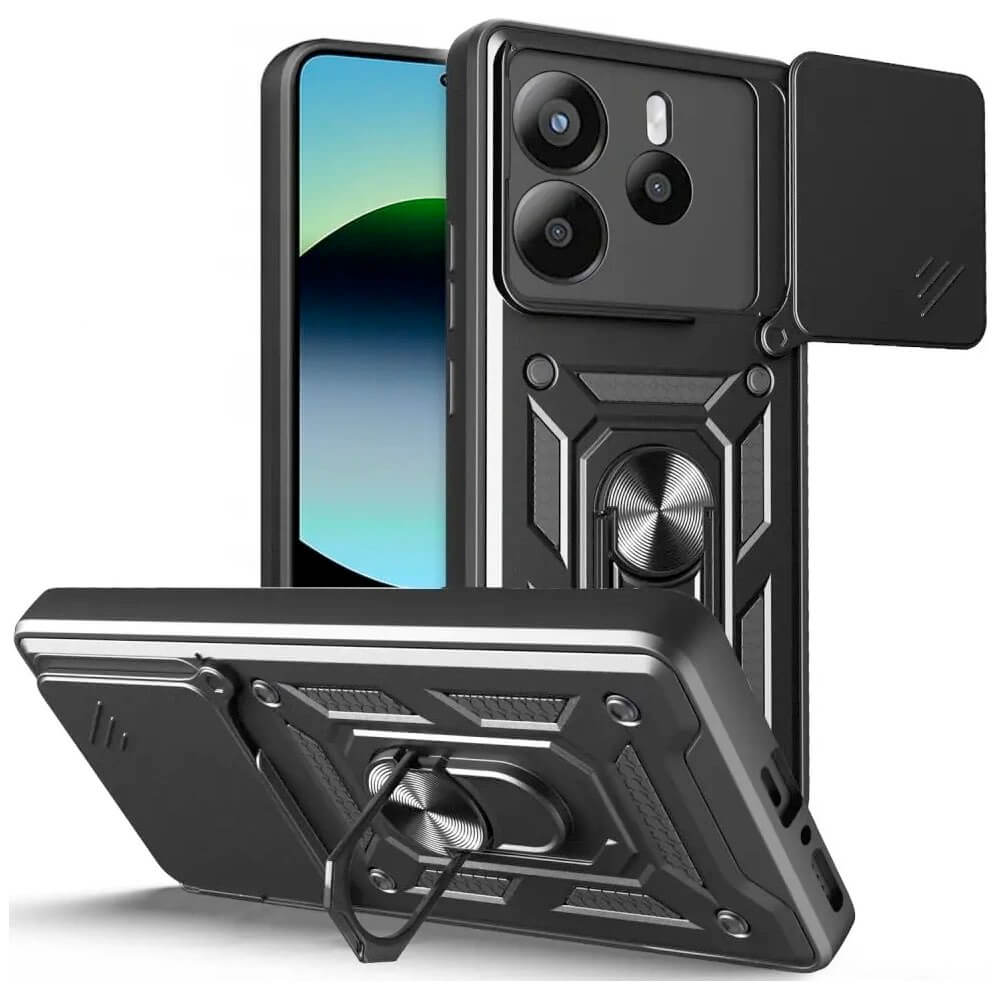 Tech-Protect CamShield Pro Hard Case - хибриден удароустойчив кейс с пръстен против изпускане за Xiaomi Redmi Note 14 5G (черен)