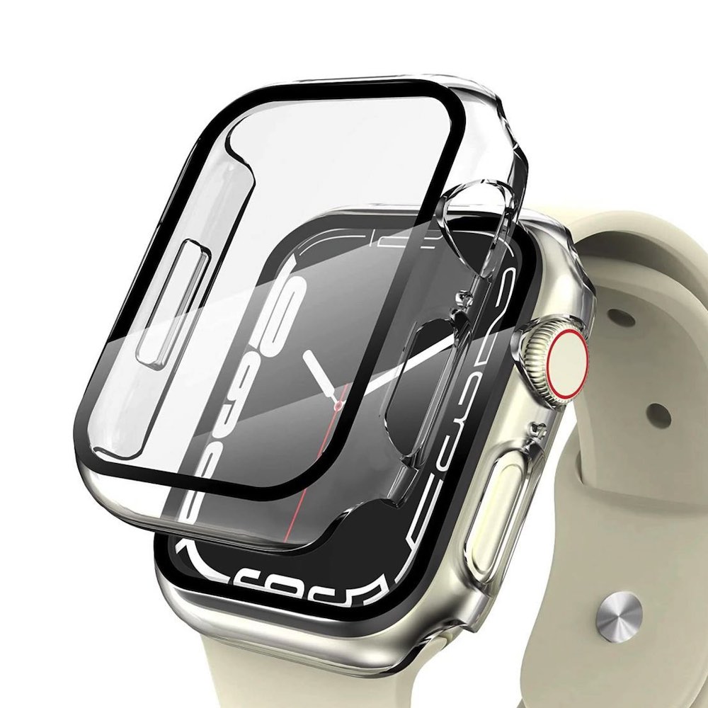 - Качествен гланциран поликарбонатов кейс с вграден стъклен скрийн протектор (защитно покритие) за дисплея за Apple Watch 7 41мм