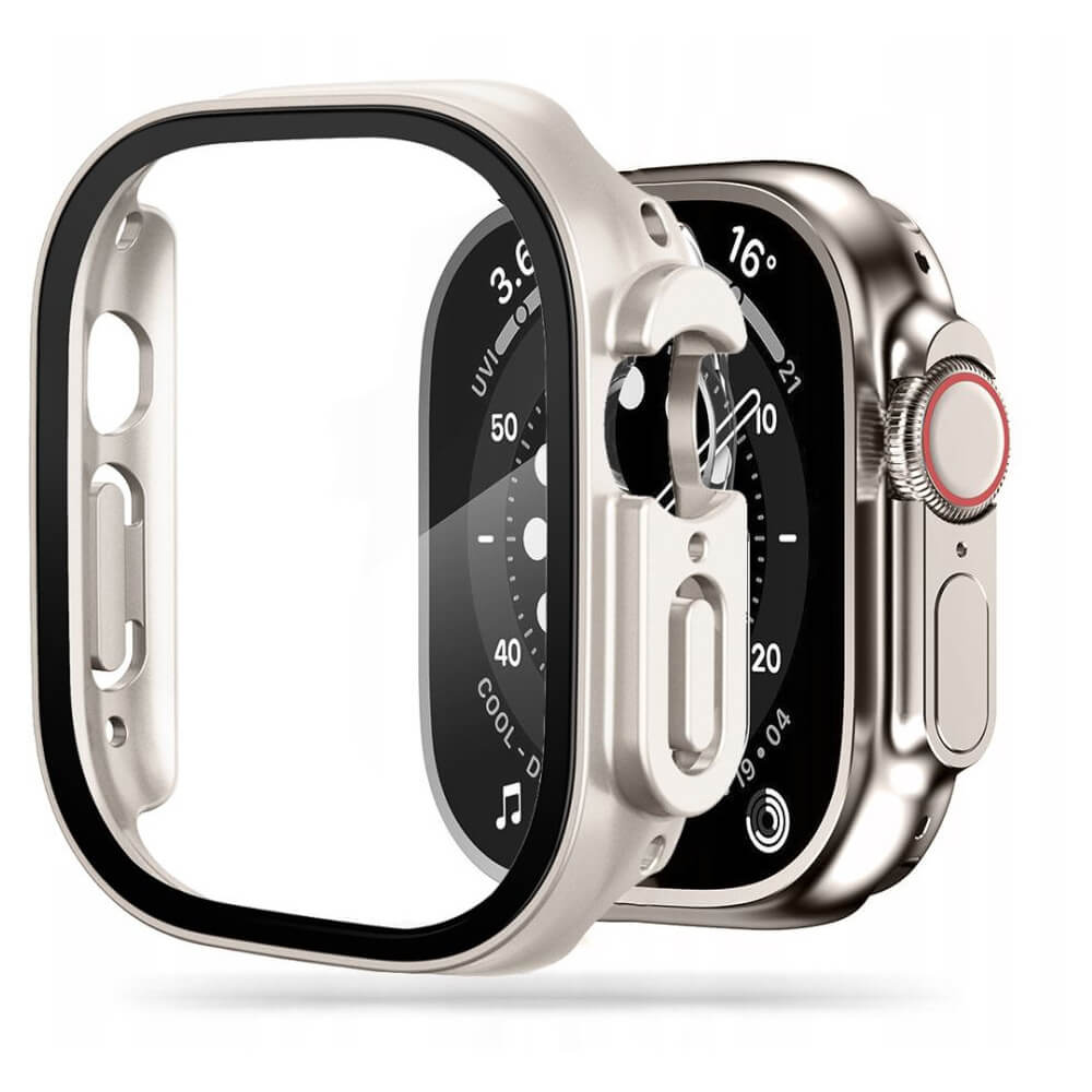 Tech-protect Defense 360 Case - качествен твърд кейс с вграден стъклен протектор за дисплея на Apple Watch Ultra 49мм (бежав)