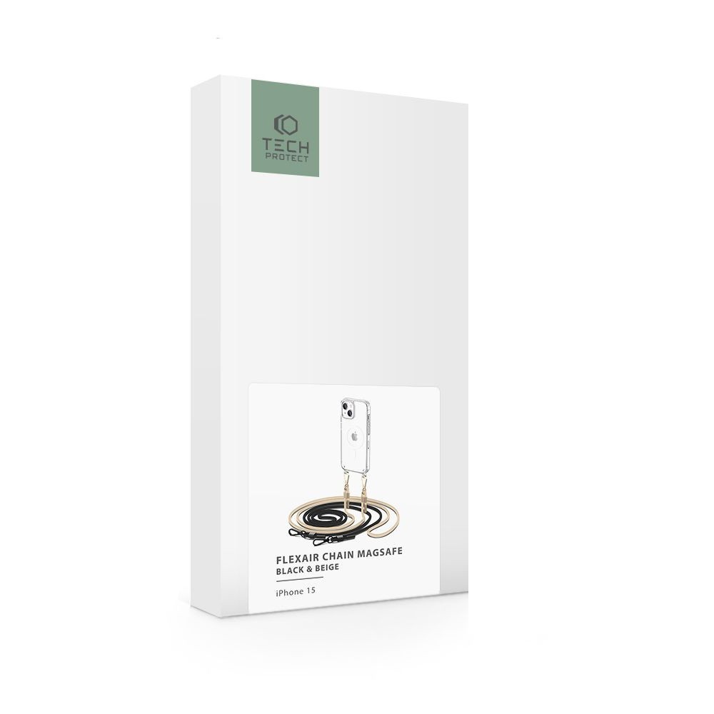 Tech-Protect Flexair Chain MagSafe Hybrid Case - хибриден удароустойчив кейс с MagSafe с връзка за носене за iPhone 15 (прозрачен)