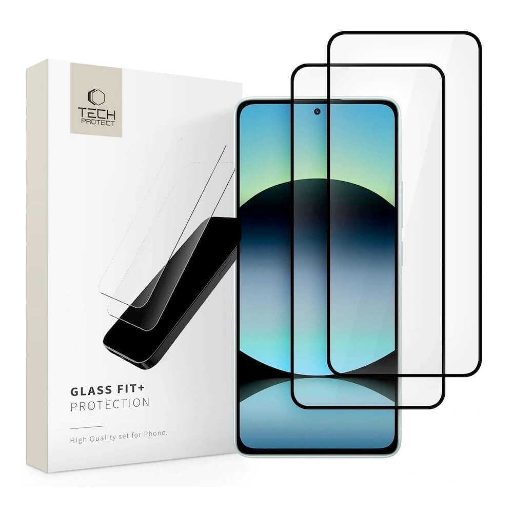 Tech-Protect Glass Fit Plus Tempered Glass 2.5D 2 Pack - 2 броя калени стъклени защитни покрития за дисплея на Xiaomi Redmi Note 14 4G, Note 14 5G (черен-прозрачен)