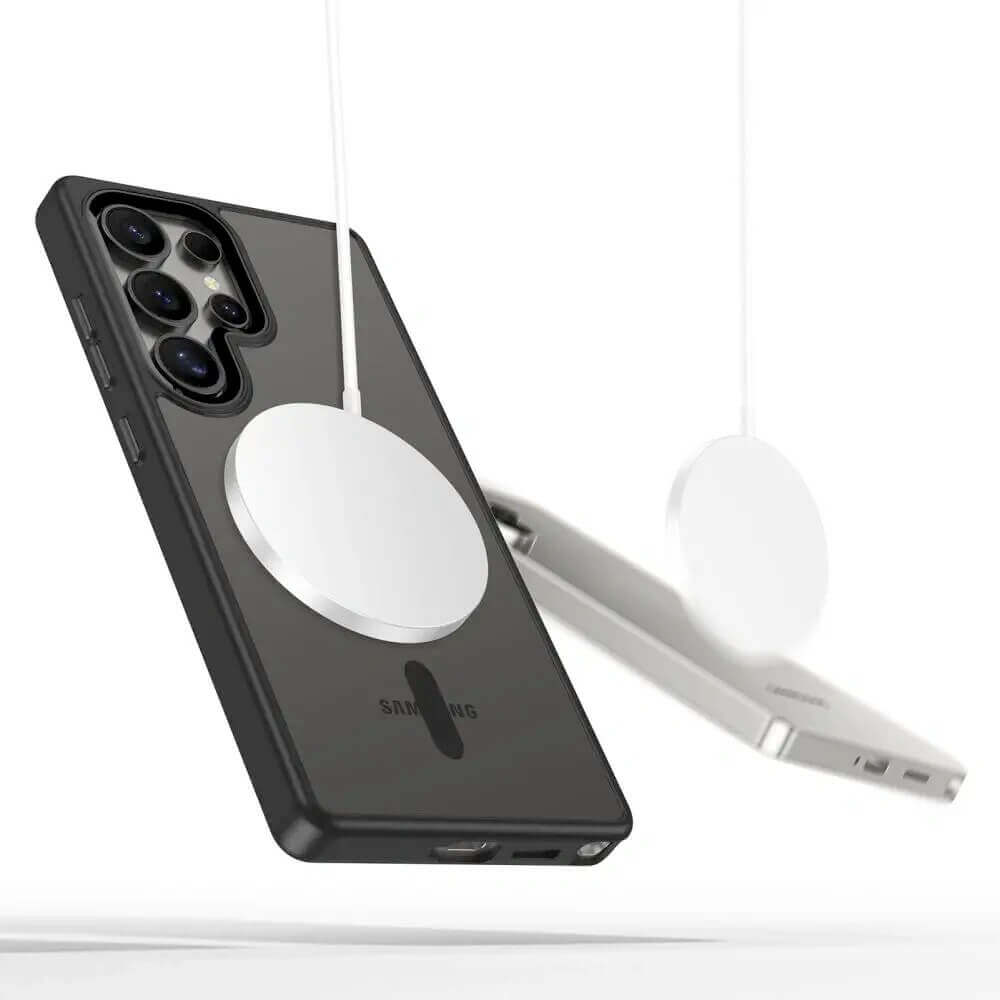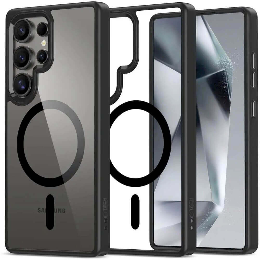Tech-Protect MagMat MagSafe Case - хибриден удароустойчив кейс с MagSafe за Samsung Galaxy S25 Ultra (черен-прозрачен)