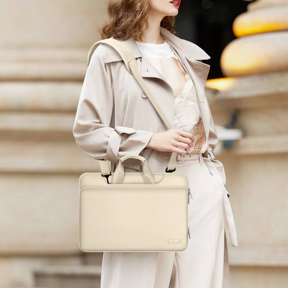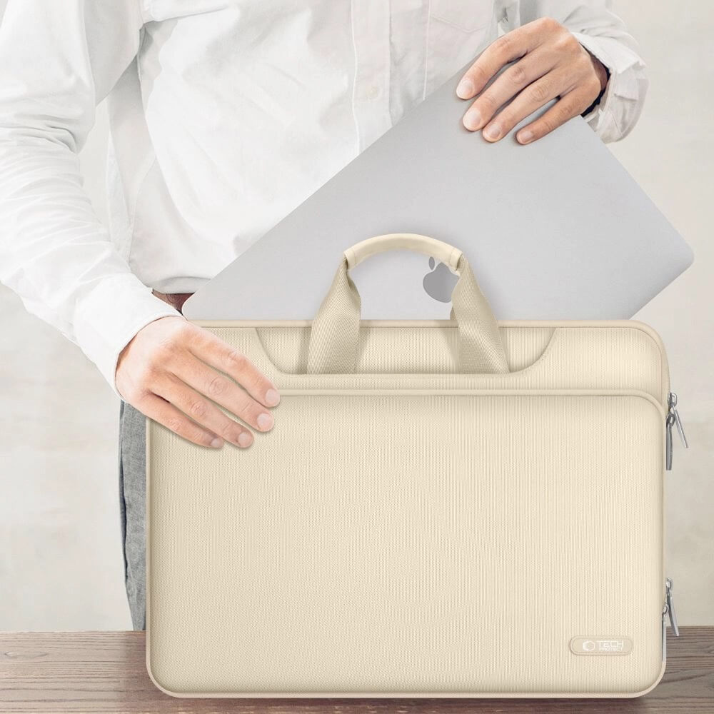 Tech-Protect PocketBag Laptop Bag 16 - елегантна чанта с дръжки и презрамка за MacBook Pro 15 и преносими компютри до 16 инча (бежов)