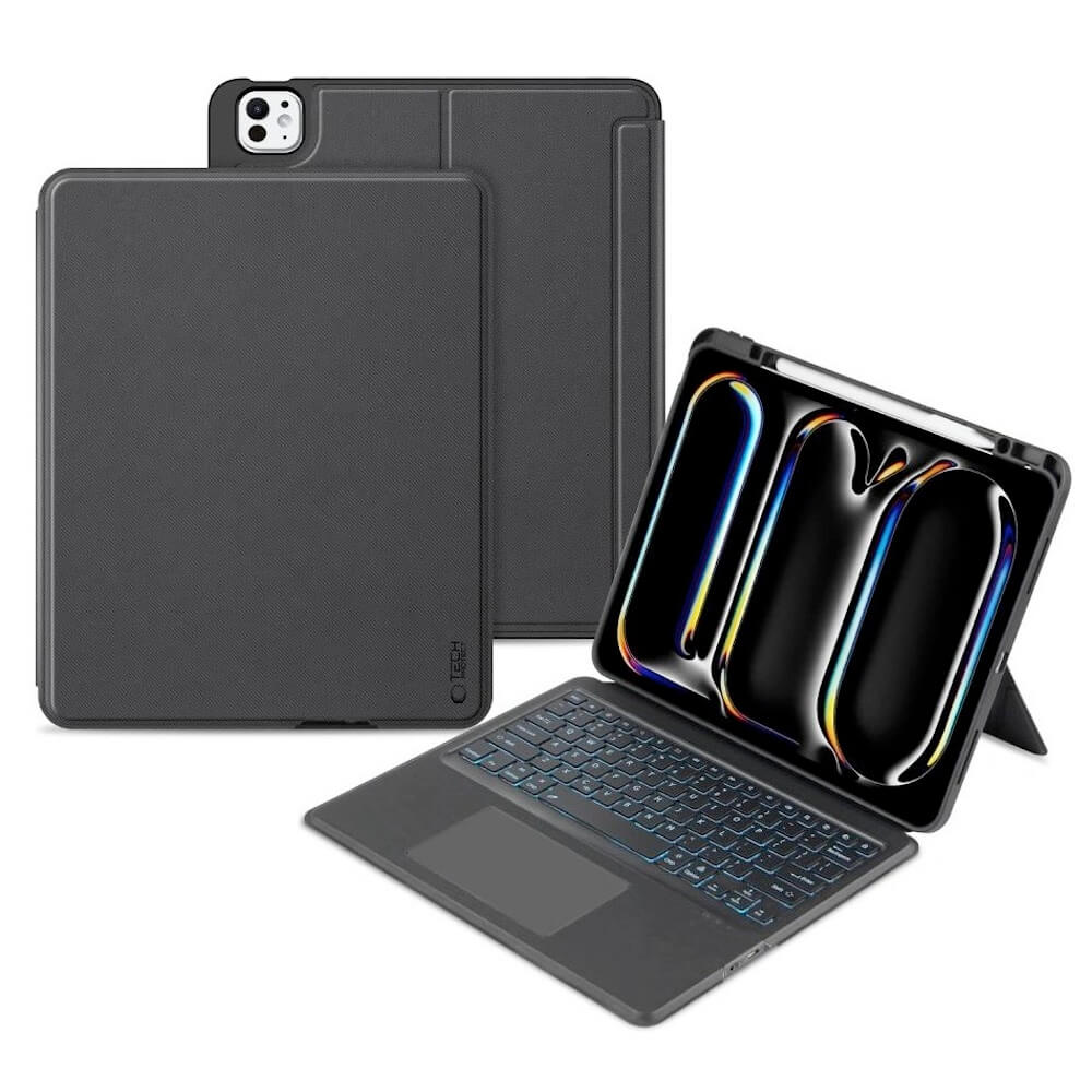 Tech-Protect SmartCase Mag Pen and Keyboard - кожен калъф с магнитно закрепяне и безжична блутут клавиатура за iPad Pro 13 (2024) (черен)