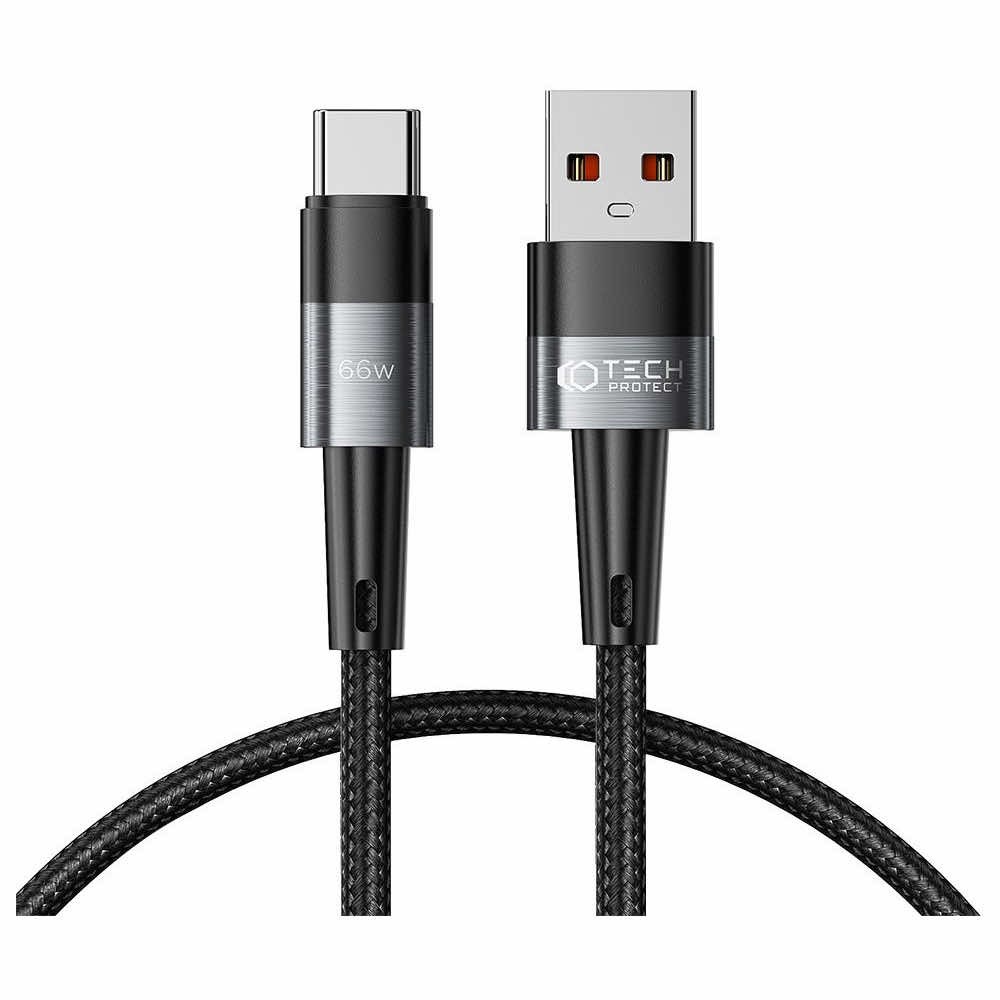 Tech-Protect Ultraboost USB-A to USB-C Cable 66W - кабел с въжена оплетка за устройства с USB-C порт (50 см) (черен)