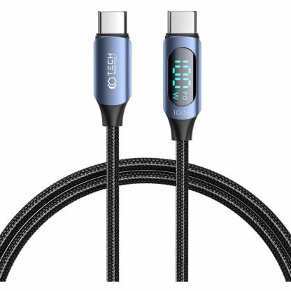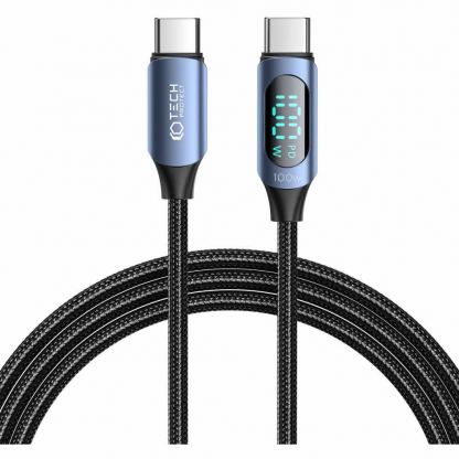 Tech-Protect UltraBoost USB-C to USB-C Cable with LED Display 100W - здрав кабел с въжена оплетка с бързо зареждане за устройства с USB-C порт (200 см) (син)
