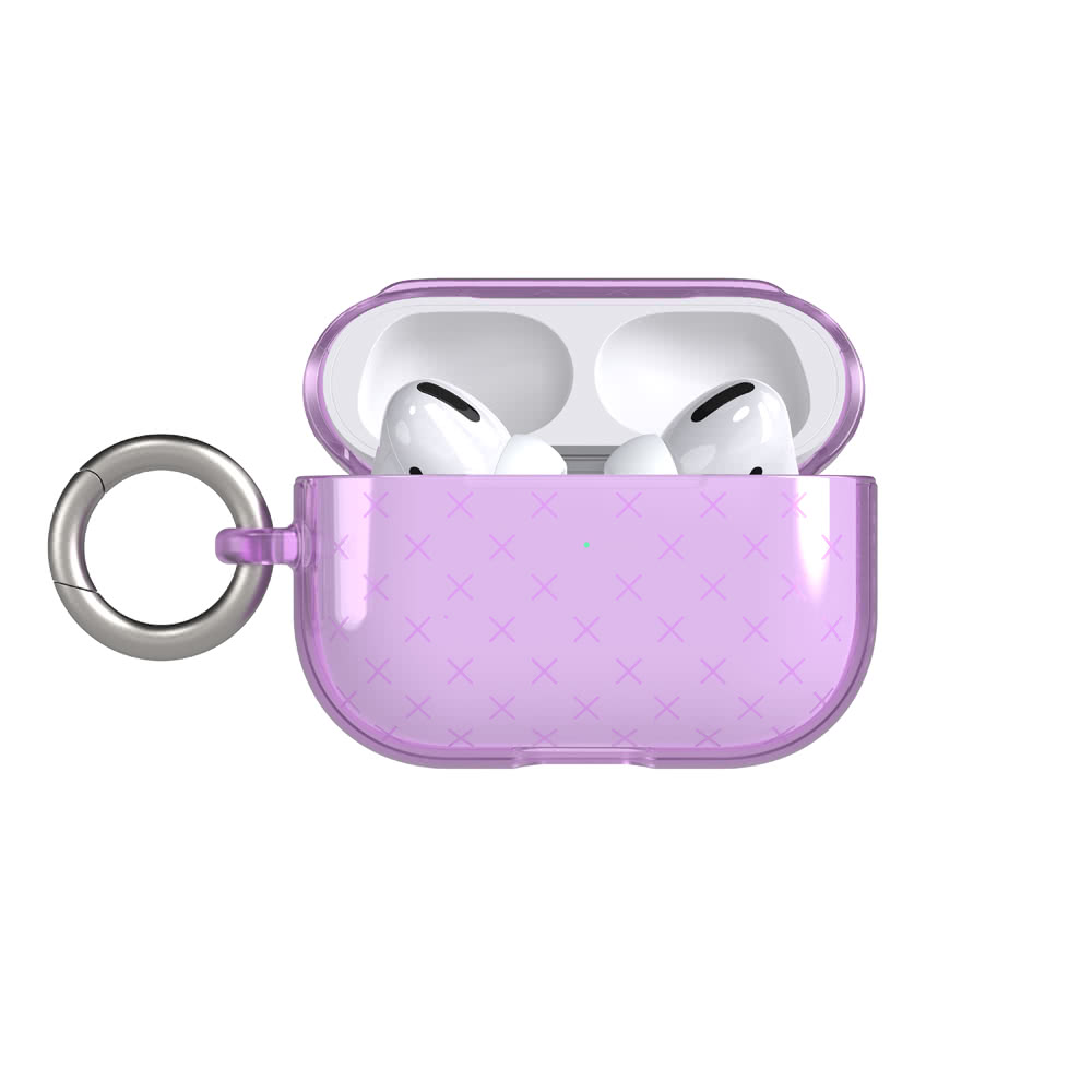 Tech21 Airpods Pro Evo Check TPU Case - силиконов (TPU) калъф с карабинер за Apple Airpods Pro (светлолилав)