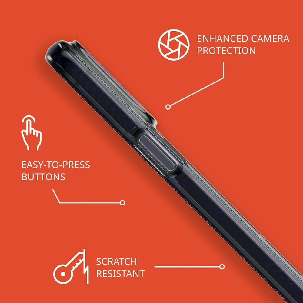 - Хибриден дизайн с комбинация от здрав поликарбонат и удароустойчив термополиуретан (TPU).