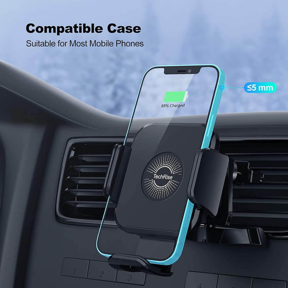 TechRise Wireless Car Charger 10W & Air Vent Holder - поставка за радиатора на кола с безжично зареждане за Qi съвместими смартфони (черен)