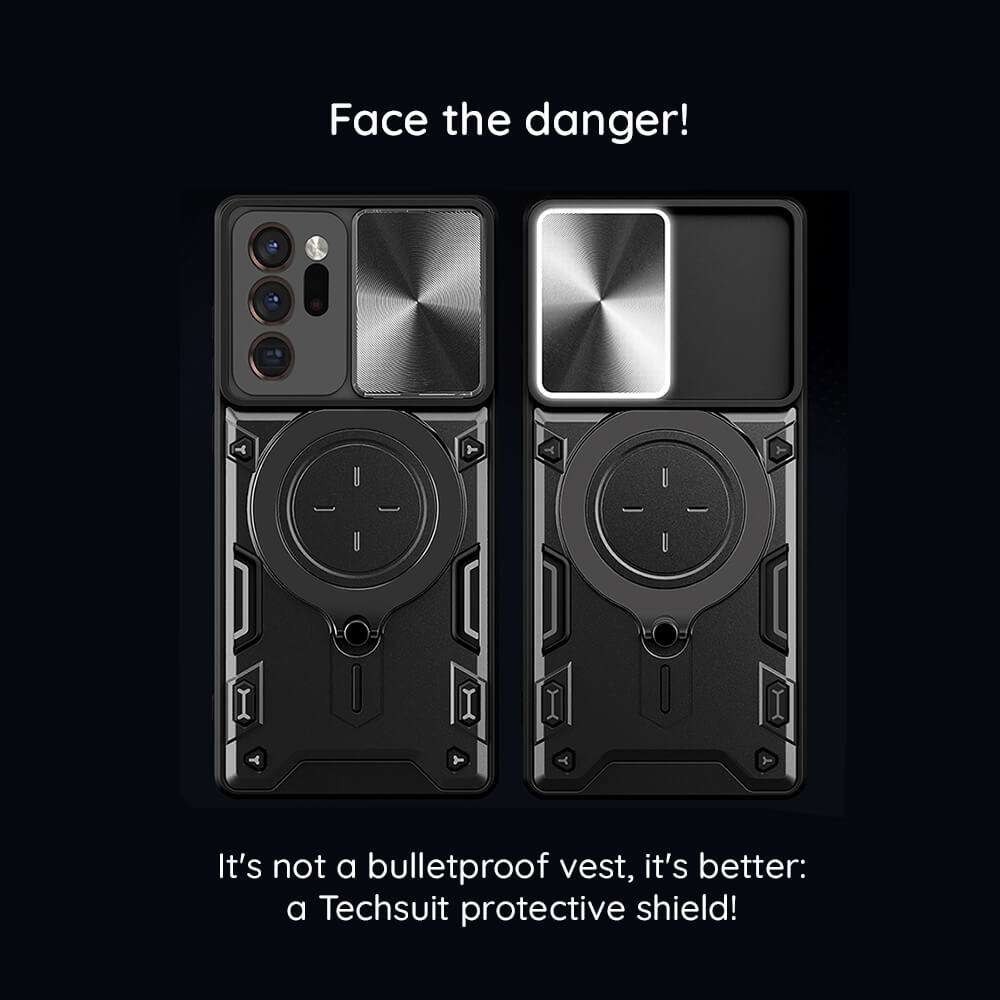 Techsuit CamGuard Pro Case - хибриден удароустойчив кейс с вградена поставка за Samsung Galaxy A36 5G (черен)