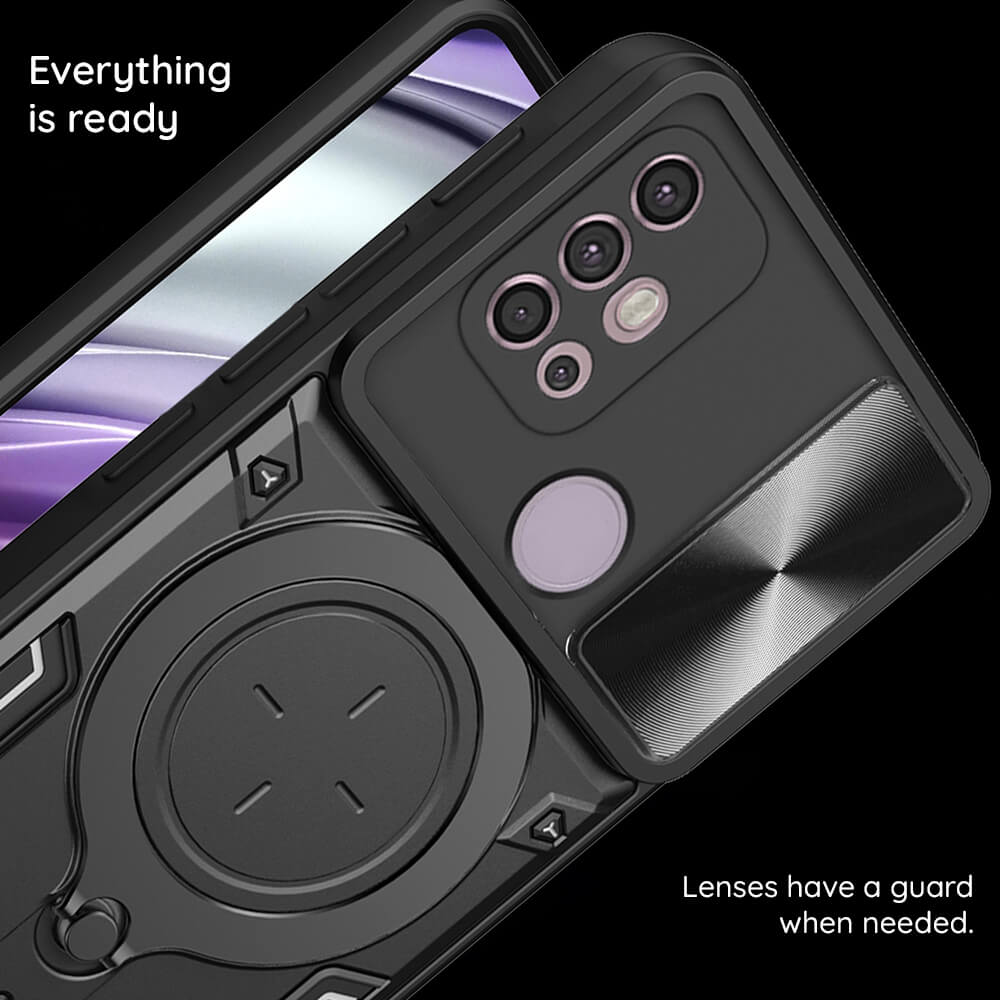 Кейсът Techsuit CamGuard Pro Case предлага изключителна защита и стил за вашия Samsung Galaxy A36 5G. С хибридната си конструкция, изработен от здрав поликарбонат и удароустойчив термополиуретан, той гарантира дълготрайност и сигурност. Специалният плъзгащ се капак ще защити камерата на вашето устройство, а вградената поставка ще ви позволи да се насладите на любимите си видеа без усилие. Не пропускайте възможността да защитите своя смартфон с този иновативен кейс!