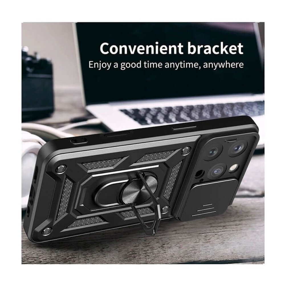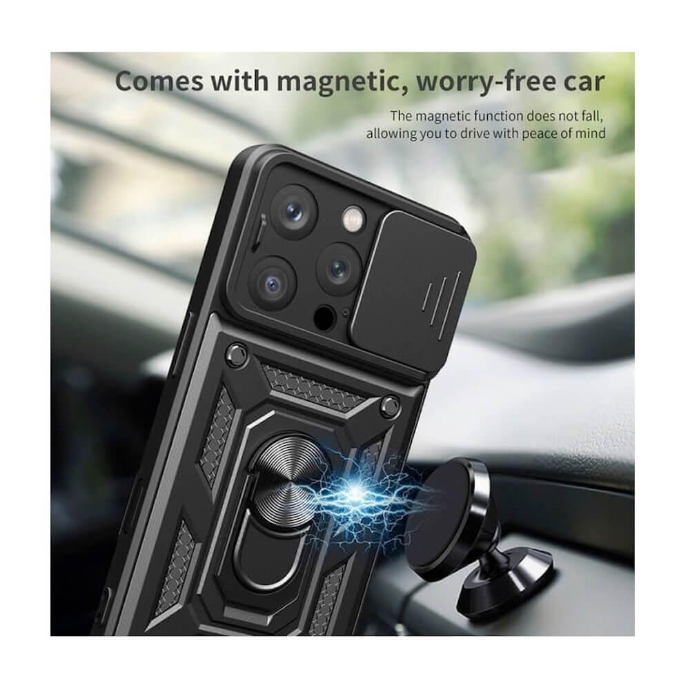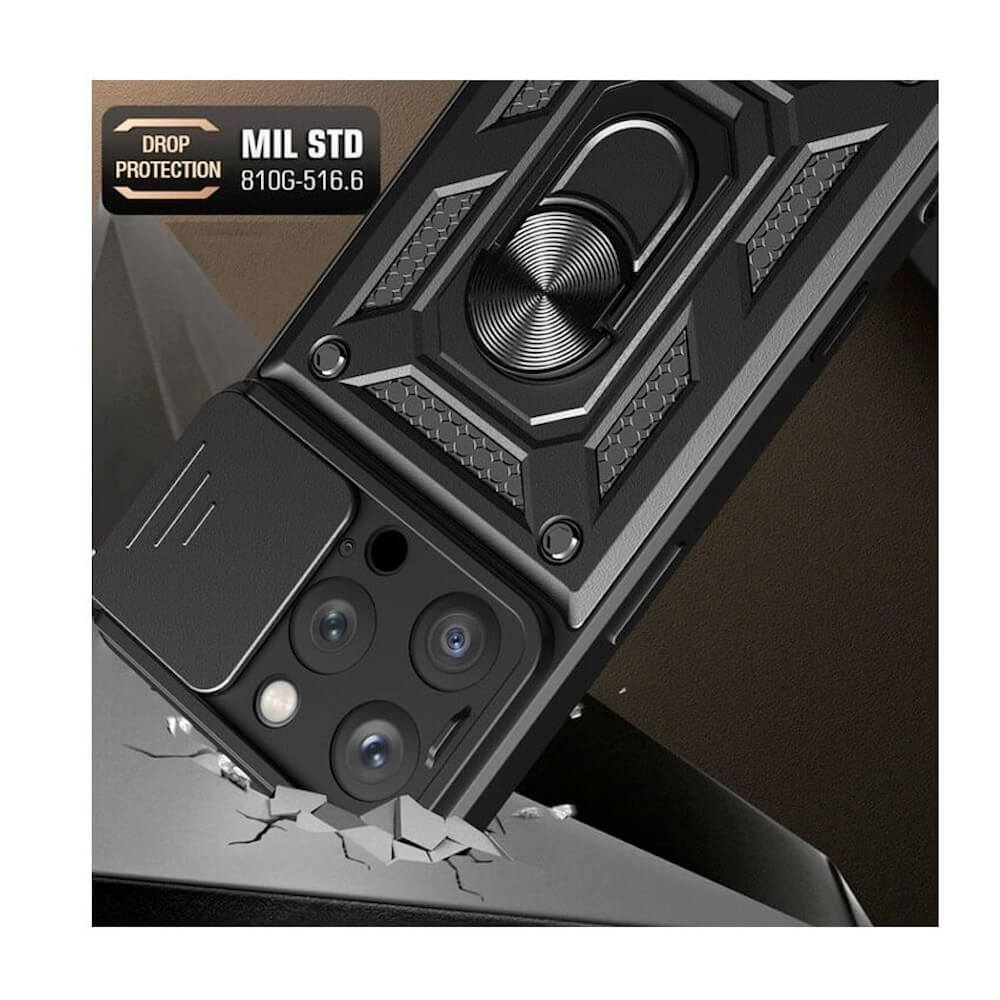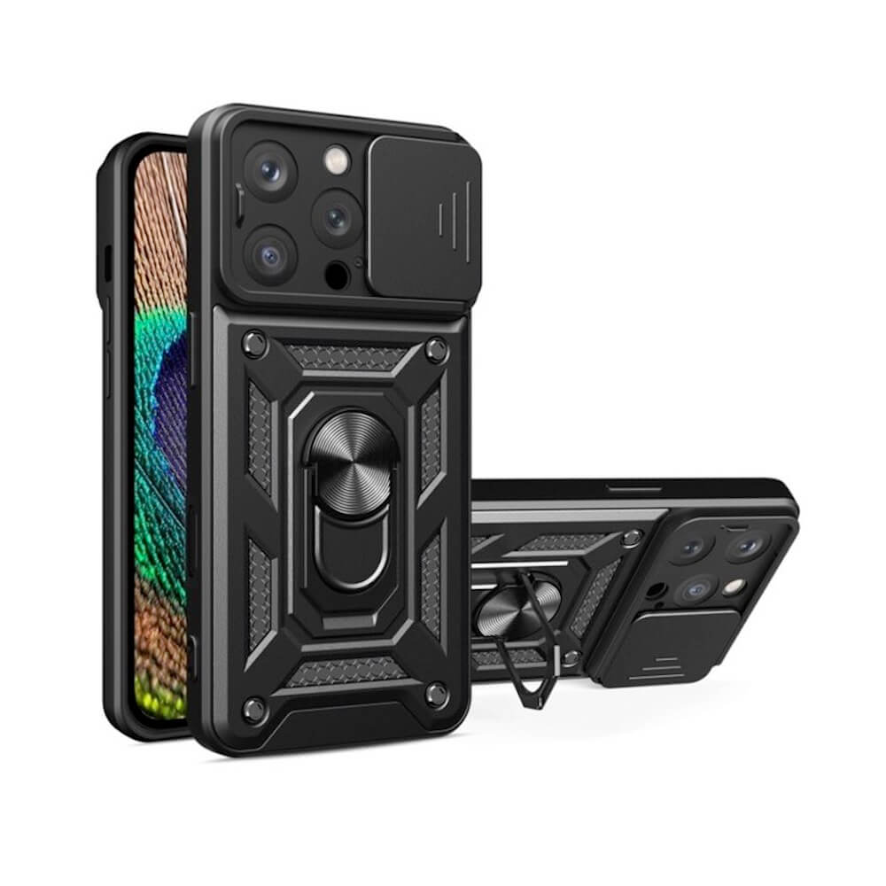 Techsuit CamShield Case - хибриден удароустойчив кейс с пръстен против изпускане за iPhone 16 Pro (черен)