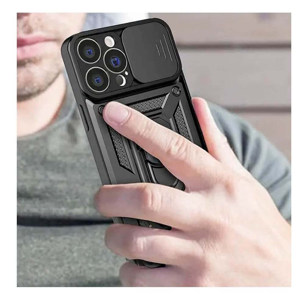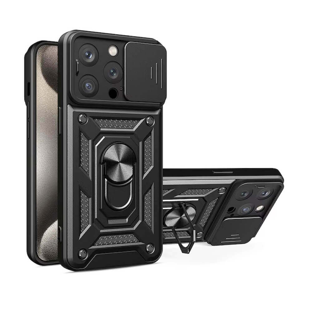 Techsuit CamShield Case - хибриден удароустойчив кейс с пръстен против изпускане за iPhone 16 Pro Max (черен)