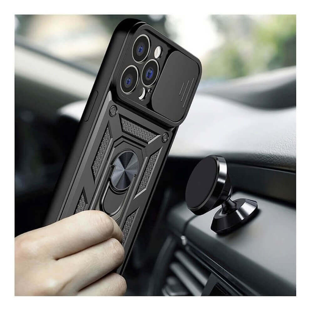 - • Вградена метална пластина в пръстена, която позволява прикрепянето на кейса към магнитни поставки за коли