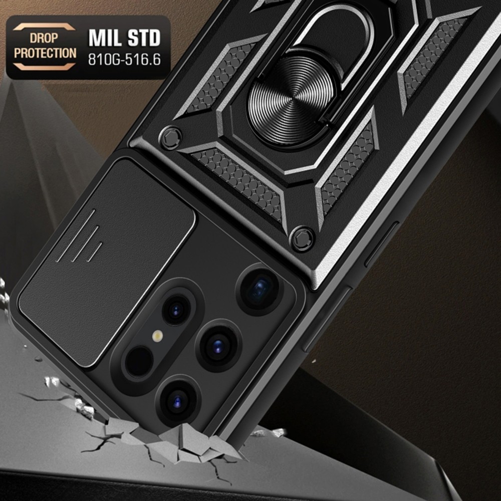 Techsuit CamShield Case - хибриден удароустойчив кейс с пръстен против изпускане за Samsung Galaxy S24 Ultra (черен)