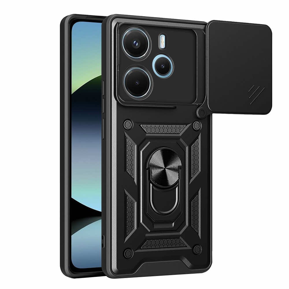 Techsuit CamShield Case - хибриден удароустойчив кейс с пръстен против изпускане за Xiaomi Redmi Note 14 4G (черен)