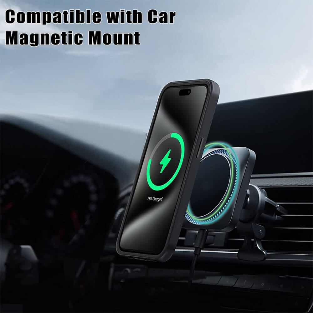 - • Кейсът е снабден с магнит, благодарение на който е съвместим с MagSafe аксесоари. Това е изцяло нов стандарт на Apple за бързо и лесно свързване на аксесоари и безжични зарядни устройства