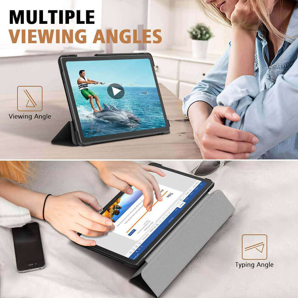 С кейса Techsuit FoldPro получавате не само защита, но и удобство. Той лесно се трансформира в поставка, което е идеално за писане, гледане на филми или дори провеждане на видеозвънец. Пълният достъп до екрана, камерата и всички бутони на таблета прави използването му изключително лесно и удобно.