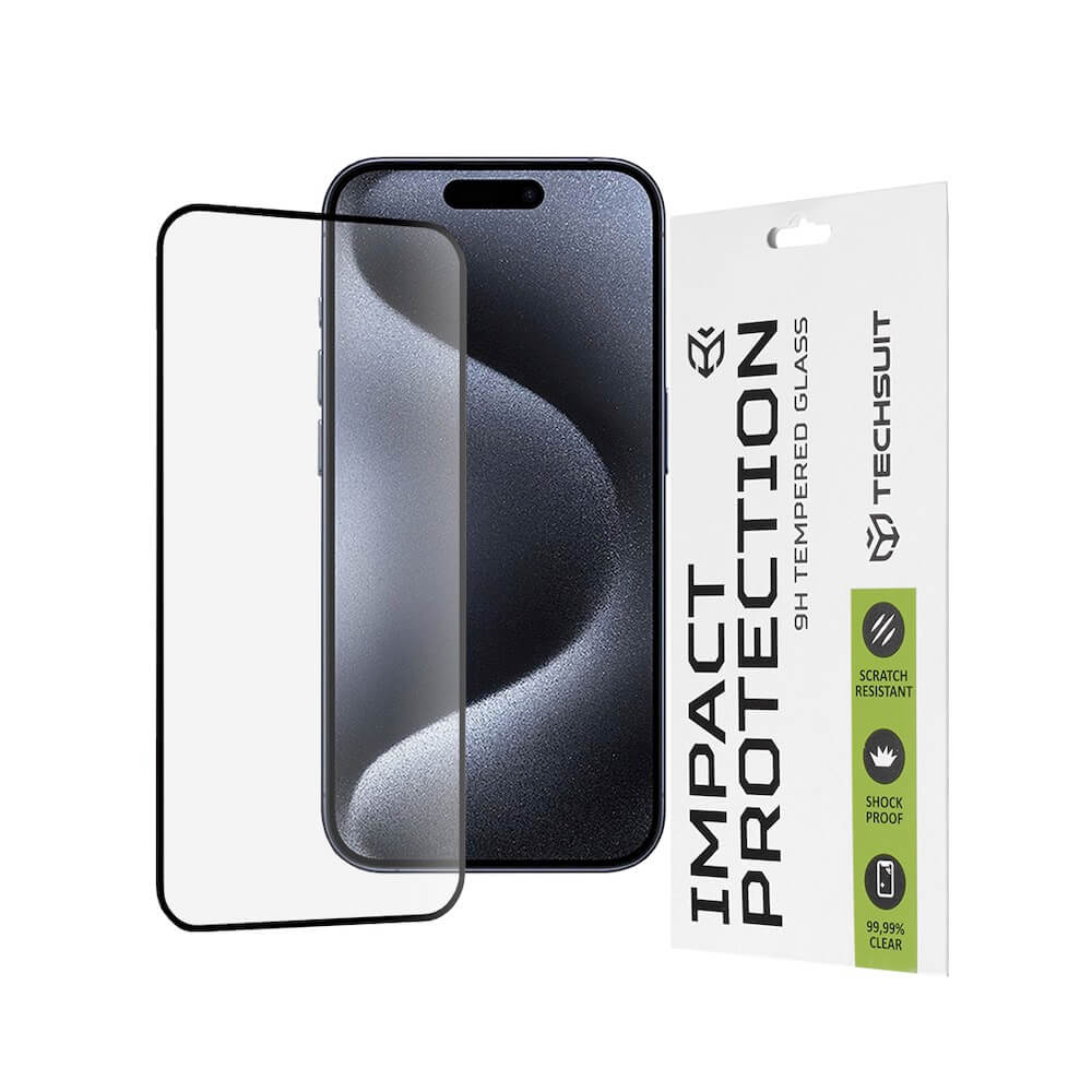 Techsuit Full Glue Tempered Glass 111D - калено стъклено защитно покритие за дисплея на iPhone 16, iPhone 15 Pro (черен-прозрачен)