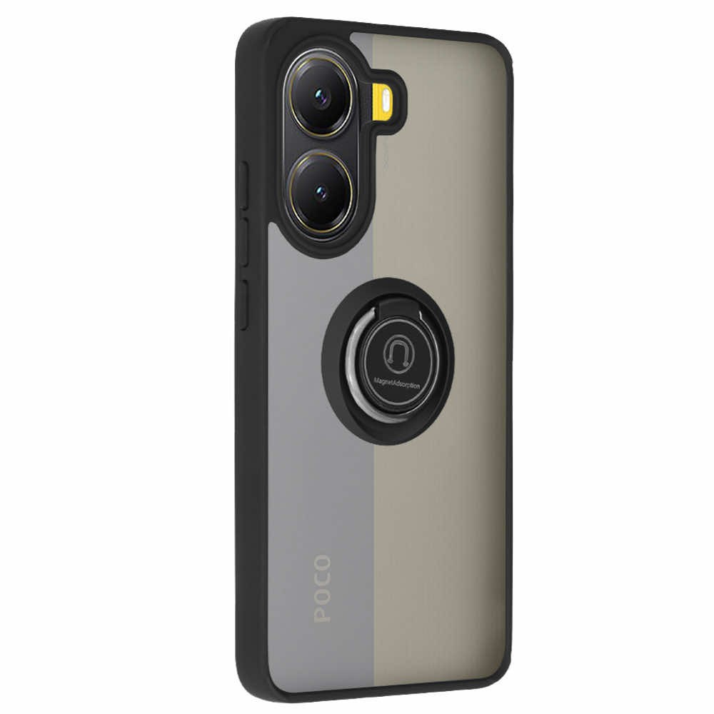 Techsuit Glinth Hybrid Case - хибриден удароустойчив кейс с пръстен против изпускане за Xiaomi Poco X7 Pro (черен-прозрачен)