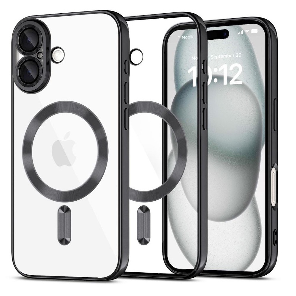 Techsuit Luxury Crystal MagSafe Case - тънък силиконов (TPU) калъф с MagSafe за iPhone 16 Plus (черен-прозрачен)