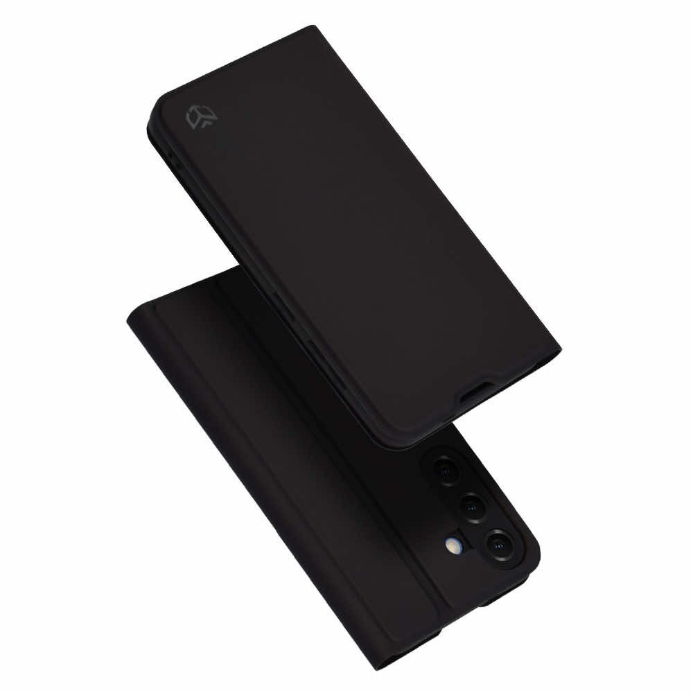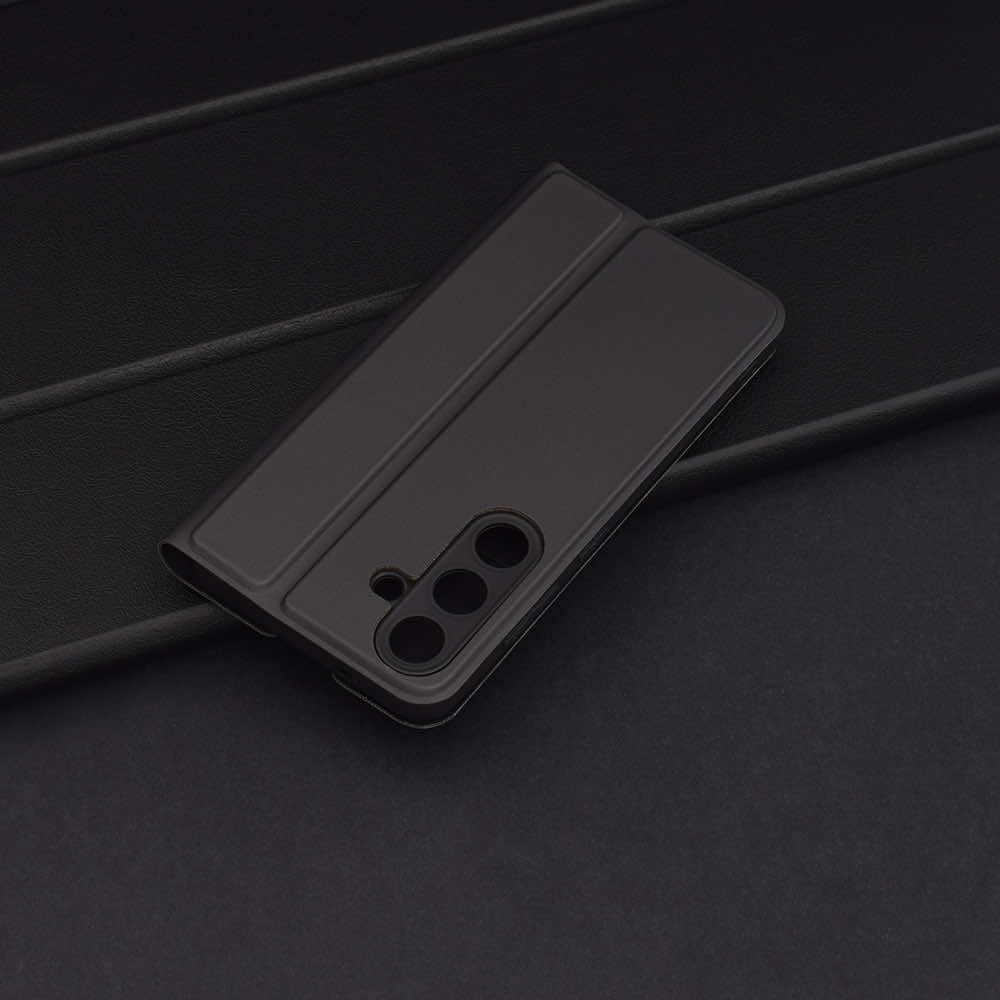 Techsuit Magskin Book - кожен калъф с поставка и отделение за кр. карти за Samsung Galaxy S25 (черен)