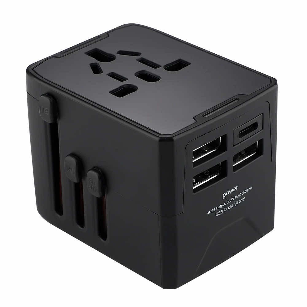 Techsuit Travel Adapter (HHT520) 15W - захранване с 1xUSB-C и 3xUSB-A изхода и преходници за цял свят в едно устройство за мобилни устройства (черен)