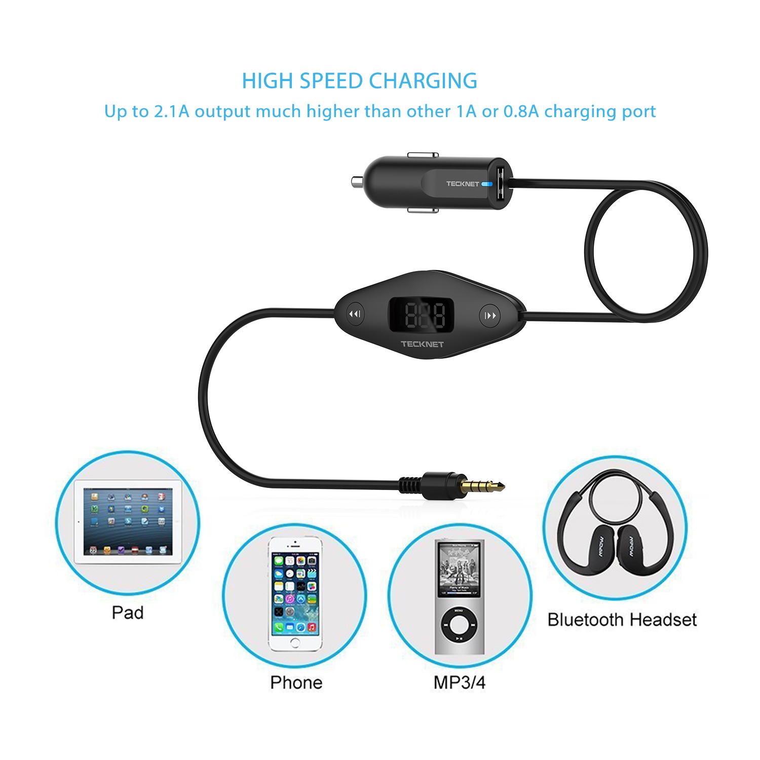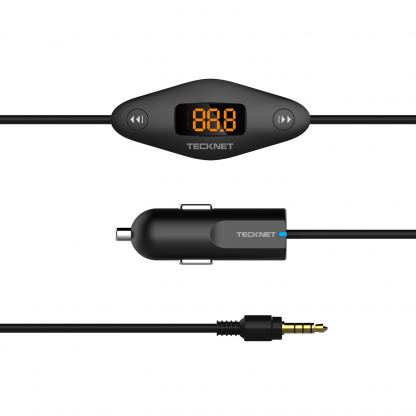 TeckNet F27 In-Car Universal FM Transmitter - зарядно за кола с универсален FM трансмитер за мобилни устройства (черен)