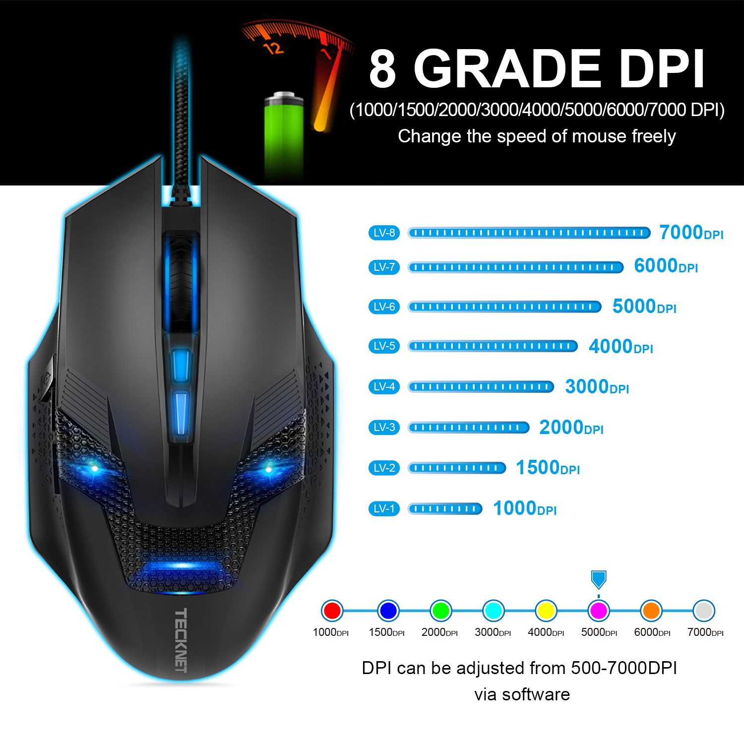 TeckNet GM299 Raptor Pro Gaming Mouse, 7000 DPI - геймърска мишка (за Mac и PC) (черен-син)