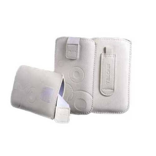Telone Deko 1 Pouch Size 13 - вертикален кожен калъф, тип джоб с лента за издърпване за LG G3 Mini, Nokia 625/730/900/920, Galaxy Alpha/S3/S4, Sony E3 и други (бял)