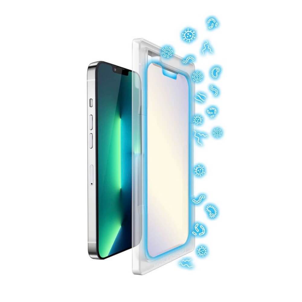 - Стъкленият протектор е с фабрично положен антибактериален слой със сребърни йони, който възпрепятства развитието на често срещани бактерии с до 99.9% успеваемост, а самият слой не се износва с времето