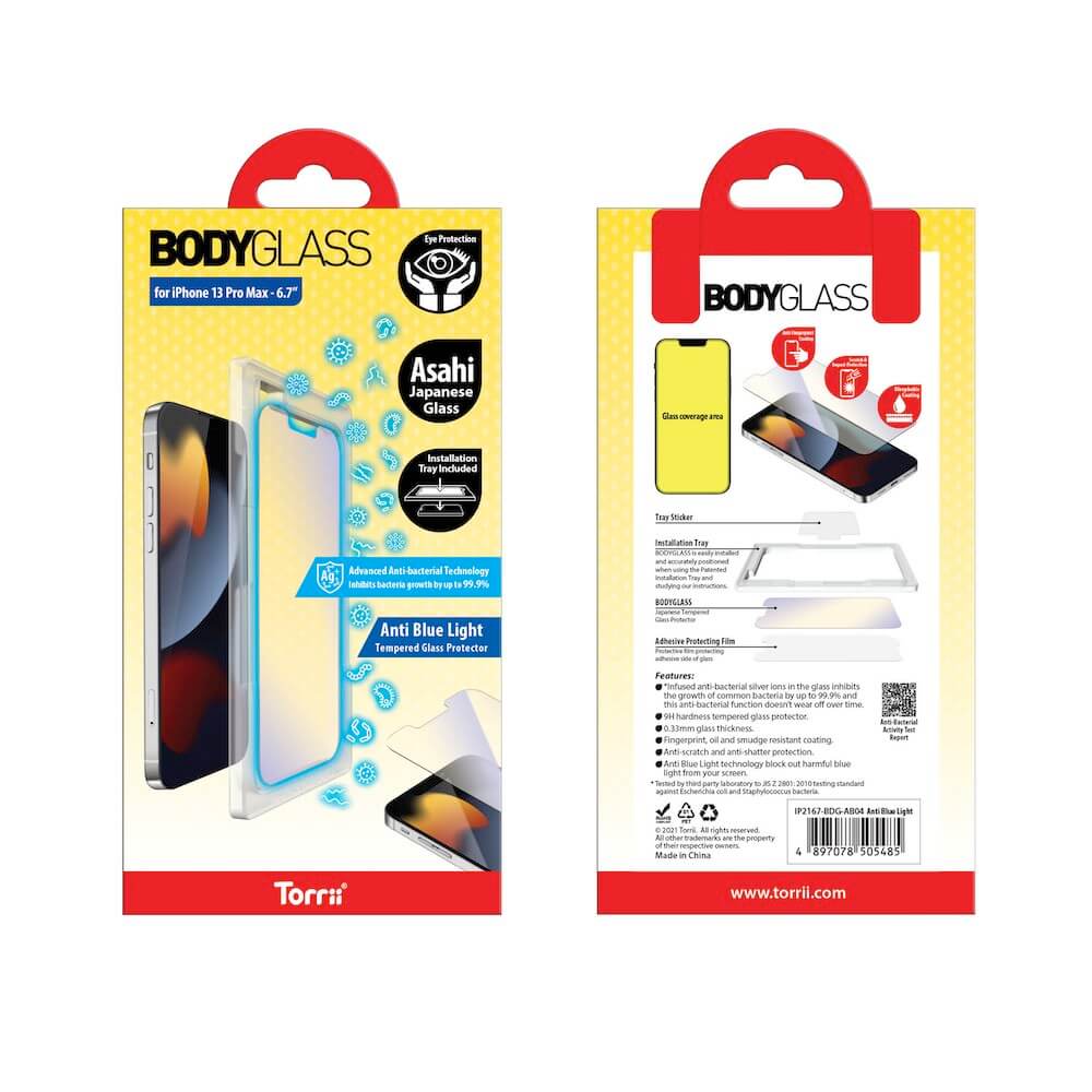 Torrii BodyGlass 2.5D Anti Blue Light & Anti-Bacterial Glass - калено стъклено защитно покритие с антибактериално покритие за iPhone 13 Pro Max (прозрачен)